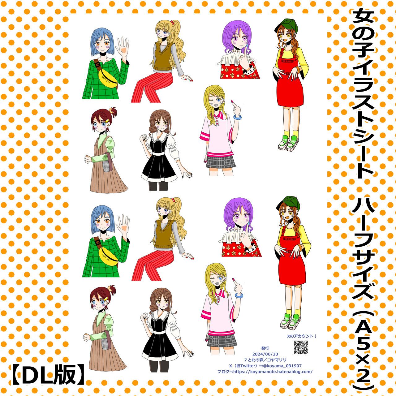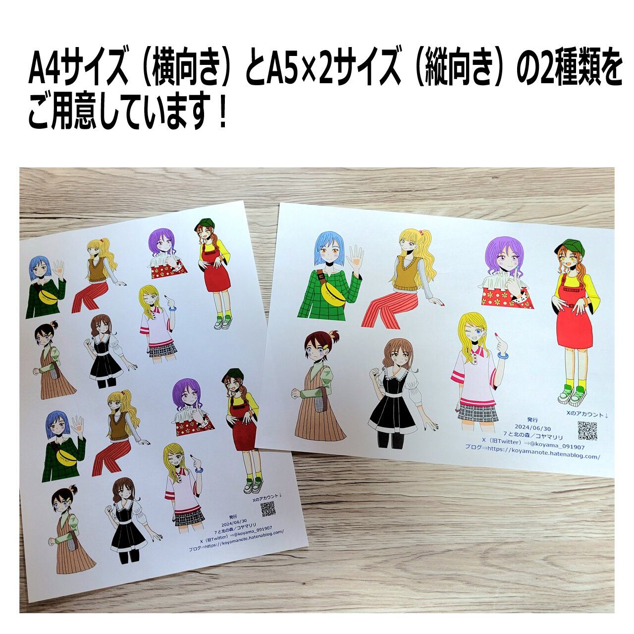 女の子イラストシートA5×2サイズ版です(o^^o)